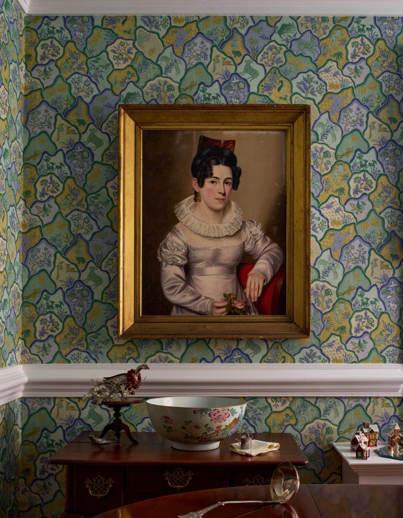 This lovely (very old) portrait on this lively French wallpaper!